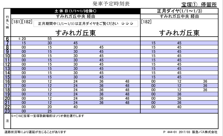 宝塚駅 ラ・ビスタ宝塚すみれガ丘 バス時刻表